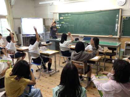 6年生の授業を他の学年の子が参観します。