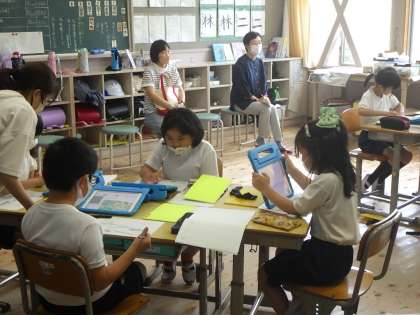 昨日は、学校公開日にたくさんの保護者の皆様にご来校いただきました。子どもたちも張り切って授業に参加していました。暑い中、運動場まで上がり、体育の参観、お疲れさまでした。