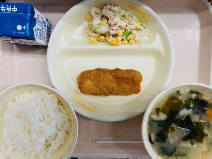 6月8日給食 公開日 2023/06/08 更新日 2023/06/08 お知らせ 本日の給食は、『ごはん、牛乳、イカフライのレモンしょうゆがけ、ツナマヨあえ、きのこの白みそ汁』です。とても美味しかったです。ごちそうさまでした!
