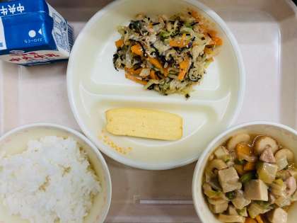 9月15日給食 公開日 2023/09/15 更新日 2023/09/15 お知らせ 本日の給食は、『ごはん、牛乳、厚焼きたまご、磯香あえ、高野豆腐のうま煮』です。とても美味しかったです。ごちそうさまでした!