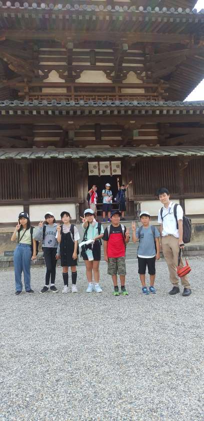 法隆寺の見学を終えて、昼食中です。とにかく暑い!熱中症が心配です。