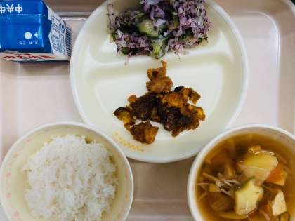 9月19日給食 公開日 2023/09/19 更新日 2023/09/19 お知らせ 本日の給食は、『ごはん、牛乳、レバーとかぼちゃの甘辛煮、ゆかりあえ、具だくさん汁』です。とても美味しかったです。ごちそうさまでした!