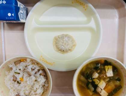 本日の給食は、『チャーハン、牛乳、パオズ、豆腐の中華スープ』です。とても美味しかったです。ごちそうさまでした!