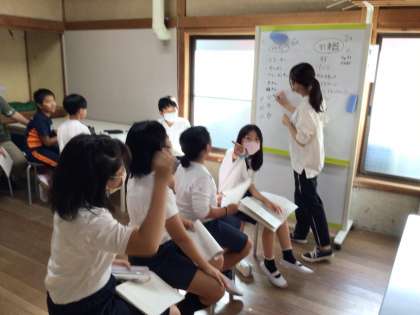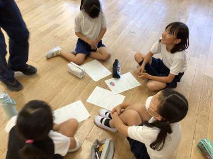 今年初めてのクラブ活動です。 音楽クラブと体育クラブに分かれて活動しています。 学習発表会に向けてがんばります。