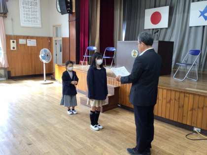 今日は前期最後の日です。終業式に先立って作文、詩、感想文の表彰がありました。