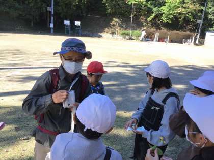 カメムシの体から生えたキノコを見せていただいて、子どもたちは驚いていました。