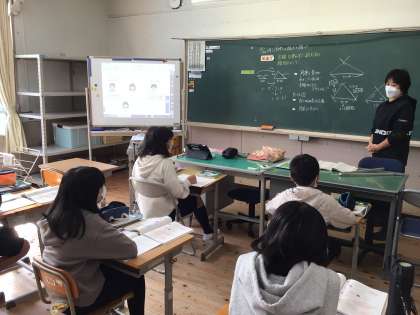 6年生は、三角形を拡大してかくためには、どんな条件が必要か、話し合っています。