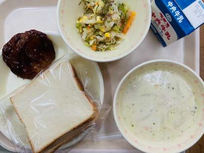 11月13日給食 公開日 2023/11/13 更新日 2023/11/13 お知らせ 本日の給食は『スライスパン、牛乳、ハンバーグ、糸昆布サラダ、豆乳スープ』です。とても美味しかったです。ごちそうさまでした!