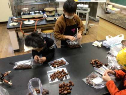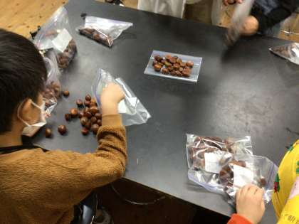 たくさん拾った栗をゆでたり、袋に入れたり、今日は大忙しです。
