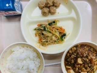 11月30日給食 公開日 2023/11/30 更新日 2023/11/30 お知らせ 本日の給食は『ごはん、牛乳、肉だんごのあんからめ、ナムル、麻婆豆腐』です。とても美味しかったです。ごちそうさまでした!