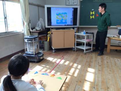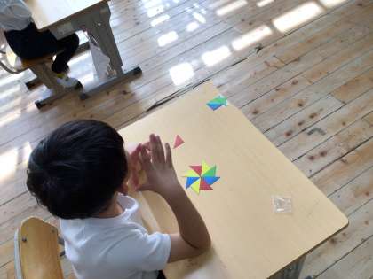 三角形をいくつか使って教科書にあるお手本のシルエットの形を作る学習をしていました。