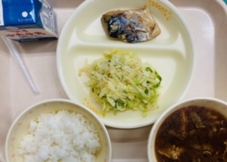 1月24日給食 公開日 2024/01/24 更新日 2024/01/24 お知らせ 今日から全国学校給食週間です。本日の給食は『ごはん、牛乳、さばの煮付け、たくあんあえ、豚汁』です。とても美味しかったです。ごちそうさまでした!