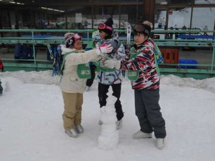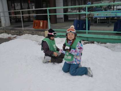 昼食を早く食べ終わった子たちは、外で雪遊びをしていました。