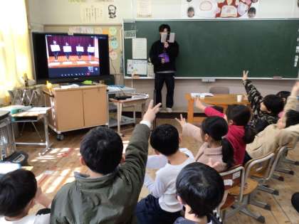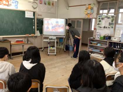 学習発表会で発表した内容をお互いに見合いました。離れていてもこうやって交流できるなんて便利です。