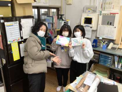 英語ボランティアの方がALTの先生の分も合わせて卒業文集の原稿を届けてくださいました。そのクオリティーの高さに受け取った6年生が歓声をあげていました。