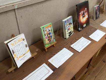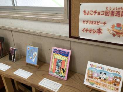 図書委員会のこのおすすめの本が紹介文とともに展示されています。