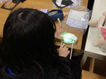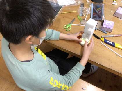 スポンジを削って下からLEDライトで照らします。スポンジを透かす光の効果を考えて作っていました。