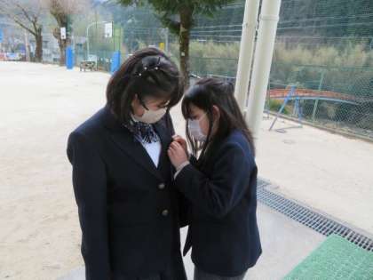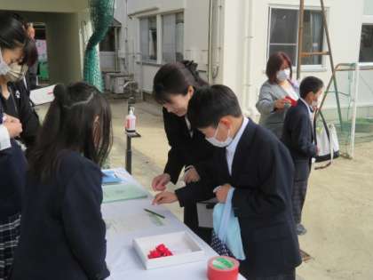 卒業生は、真新しい中学校の制服に身を包み登校しました。