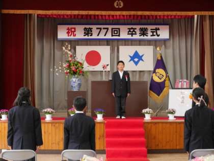 卒業証書授与では、名前を呼ばれて、大きな声の返事が響きました。