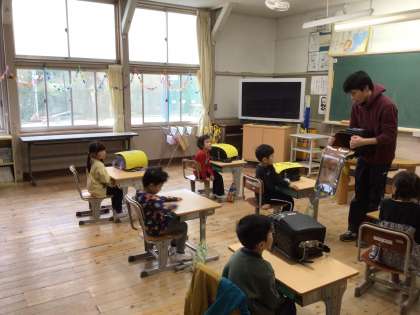 1年生も元気に登校し、ランドセルのしまい方を聞いていました。