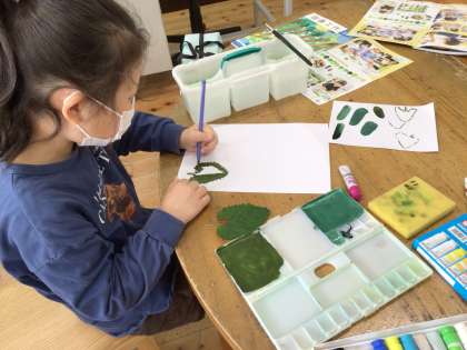 学校の周りで葉っぱを見つけてよく観察して描いています。