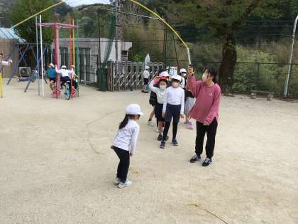 先生も子どもたちも校庭に出て体を動かしています。