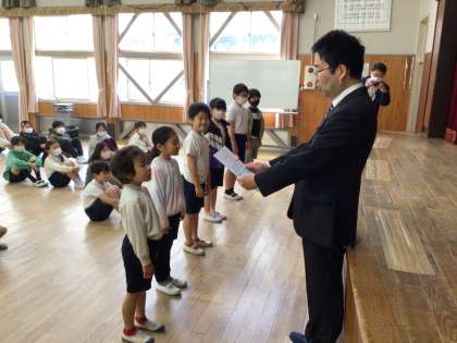 前期の委員会、委員長と学年代表の任命式です。 がんばってください!