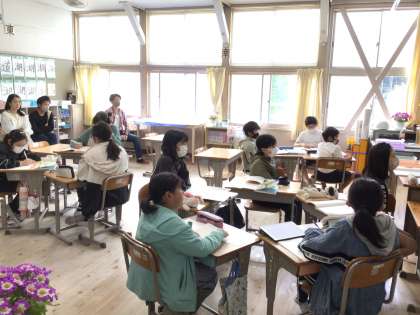 中学年、高学年のクラスでは、音読発表会が行われていました。