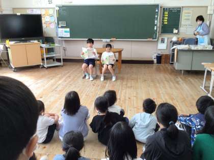 2年生が「森のゆうびんやさん」の音読発表会をしました。