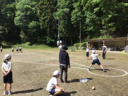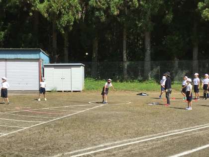 1年生は初めてですが、高学年が良いお手本となってくれ、全員スムーズに走ったり投げたりすることができました。