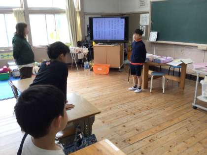 1年生は健康観察をしていました。