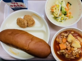 6月3日給食 公開日 2024/06/03 更新日 2024/06/03 お知らせ 今日の給食は『クロロール、牛乳、チキンナゲット、フレンチサラダ、ポークビーンズ』です。とても美味しかったです。ごちそうさまでした!