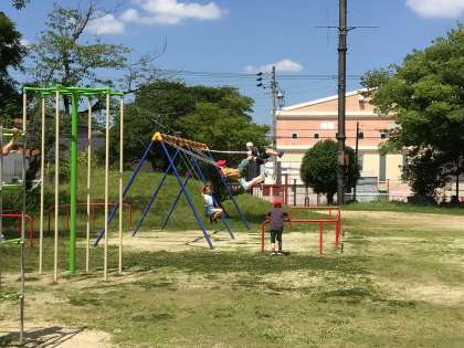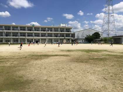 次は運動場で遊びました。追分小にはない遊具や、やったことのないくらい大人数でのしっぽ取り。追分っ子たちは、広い運動場に目を輝かせて、元城小のお友達と一緒に遊びました。