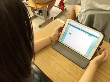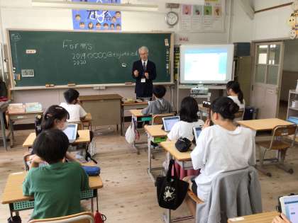 ICT支援員の先生とタブレットを使って学習しています。 フォームスでのアンケートの作り方を学習しました。