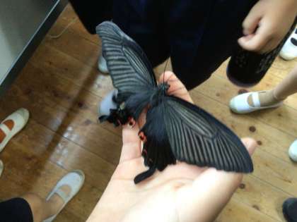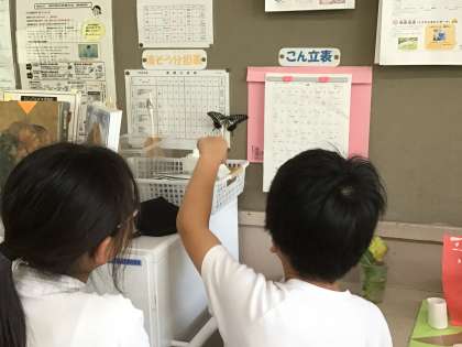 教室で飼っていたモンシロチョウやクロアゲハが次々に羽化しています。