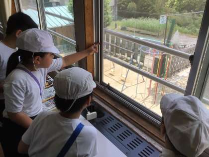子どもたちは、嬉しそうに飛んでいくチョウを見送っています。