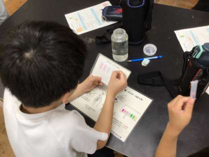 ほとんどの子がボトルに汲んだ川の水は「においがある」と言っていましたが、パックテストの結果、魚は住める水質を保っていることがわかりました。