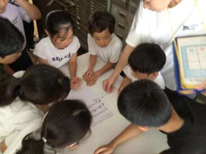 縦割り班ごとに校内を巡りながらクイズに答えてビンゴを楽しんでいました。