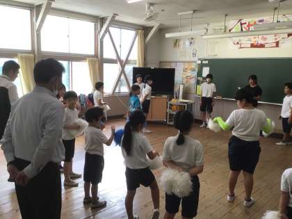 応援合戦の練習 公開日 2024/10/02 更新日 2024/10/02 学校行事 今日から応援の練習が始りました。 56年生が掛け声や振りを考え、下の学年に教えています。 今日は教育長の訪問があり、子どもたちが頑張っている様子を見ていただきました。