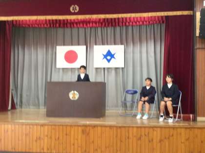代表の子のスピーチでは、「一輪車を頑張りました」「後期は委員会を頑張りたい」など、反省と抱負の発表がありました。