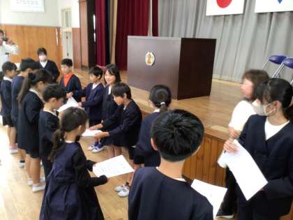図書委員会からは、読書週間の多読賞の表彰がありました。賞に選ばれた子が選んだ本は図書室にすでに入っているそうです。