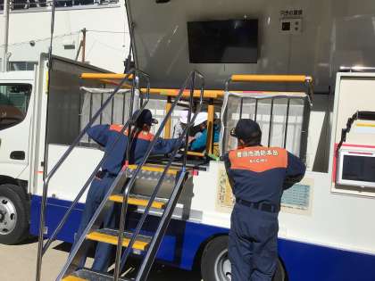 防サイくん(起震車)体験では震度6の揺れを体験しました。