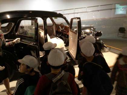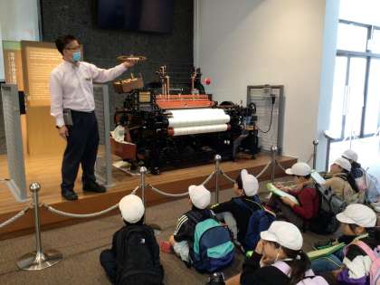 11月8日(金)3、4年生 トヨタ鞍ケ池記念館 公開日 2024/11/08 更新日 2024/11/08 各学年から 3、4年生は、社会科で「クルマのまちをきずく」の学習をしています。今日はトヨタ鞍ケ池記念館に出かけて、どのように自動車が作られてきたのか、自動織機の実演や、写真、映像などから多くのことを学んできました。失敗を繰り返しながらも、目標達成まで努力し続ける姿勢がすごいという感想が聞かれました。