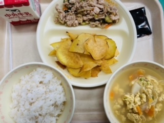 11月19日給食 公開日 2024/11/19 更新日 2024/11/19 お知らせ 今日の給食は『麦ごはん、牛乳、さつまいもチップス、ビビンバ丼・みそたれ、中華卵スープ』です。とても美味しかったです。ごちそうさまでした!