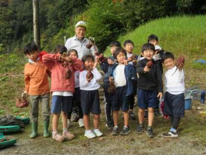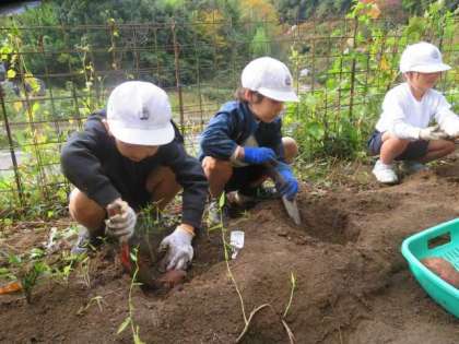 植え付けでもお世話になった地域ボランティアさんがこの日もお手伝いしてくださって、子どもたちはお芋掘りを楽しむことができました。