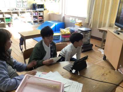 チームスで交流 公開日 2024/12/02 更新日 2024/12/02 各学年から 12月13日に特別支援学級交流会があります。 足助地区の特別支援学級の子どもたちの交流会です。 今日は、足助小、萩野小、冷田小でチームスを使ってリハーサルをしていました。