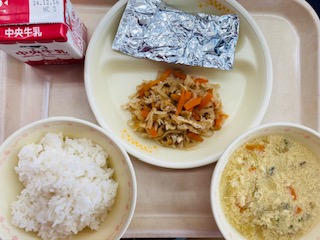 12月12日給食 公開日 2024/12/12 更新日 2024/12/12 お知らせ 今日の給食は『ごはん、牛乳、さばの銀紙焼き、切干しだいこんの炒め煮、かきたま汁』です。とても美味しかったです。ごちそうさまでした!