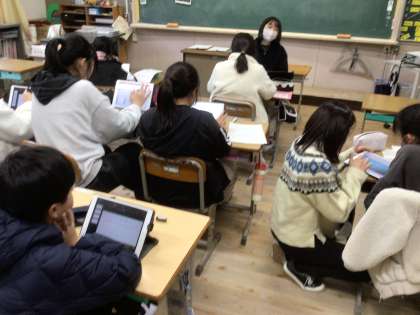 学習発表会に向けて 公開日 2025/01/09 更新日 2025/01/09 各学年から 総合的学習の時間でSDG'sについて学習している56年生。 今日は、巴川漁協のお二人を講師にお招きして巴川の現状について学習しました。 5時間目には、さっそくそれぞれのテーマにそって発表の準備が始まっていました。