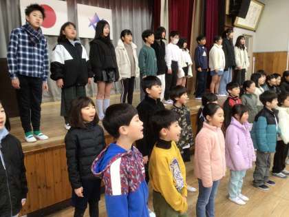 「君はカワセミを見たか」を今年初めて全校で一緒に歌ってみました。