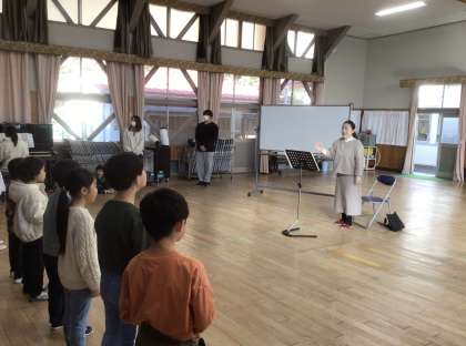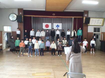 鳥山先生に来ていただき、「君はカワセミを見たか」のご指導をしていただきました。鳥山先生の一言で子どもたちの歌声が変わるのが不思議です。